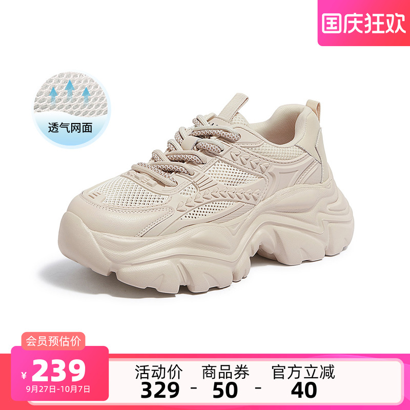 骆驼女鞋2025春夏季新款透气杏色爆款厚底增高老爹鞋休闲运动鞋女