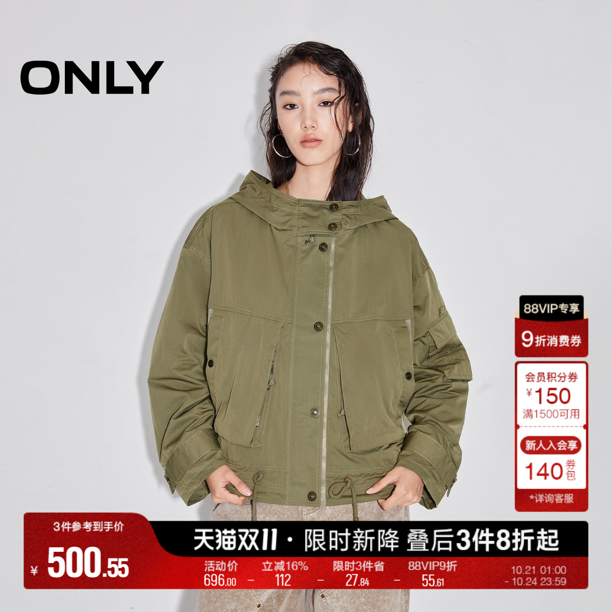 ONLY2025秋季新款休闲机能风落肩宽松保暖连帽外套女|125136014