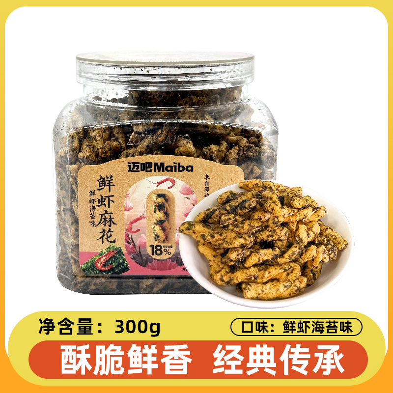 迈吧鲜虾麻花300g罐装海苔蟹黄甜花椒味花网红休闲零食特产糕点