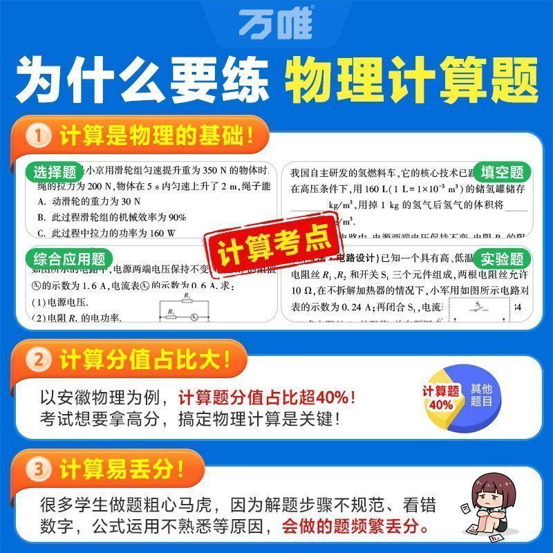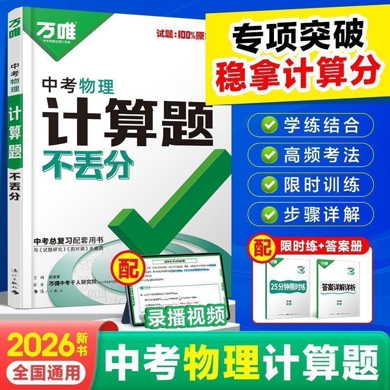 2026万唯中考物理计算题不丢分数学解答题分初中七八九年级总复习训练新版考点分类