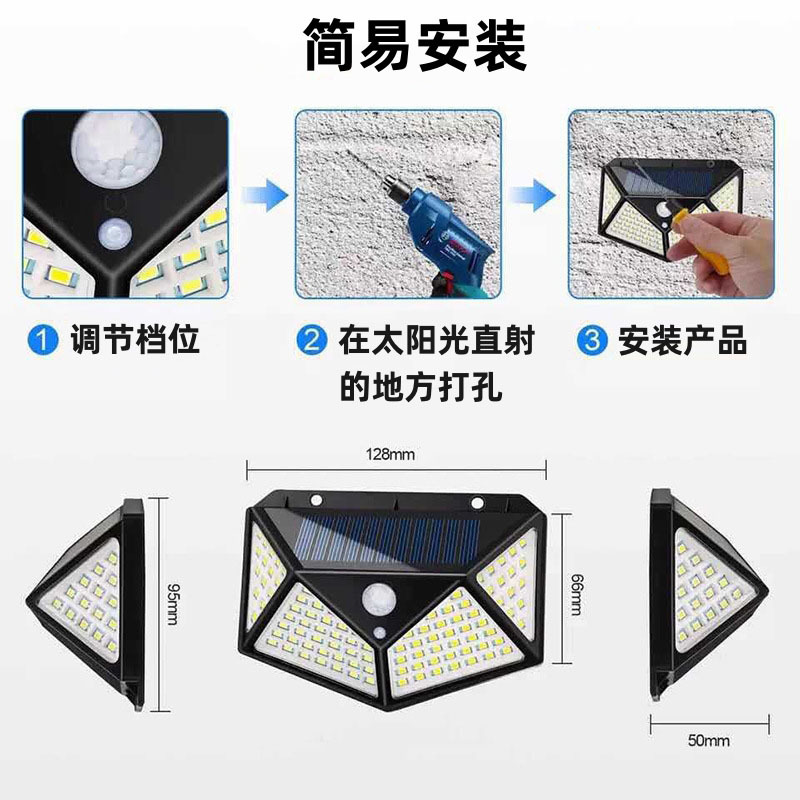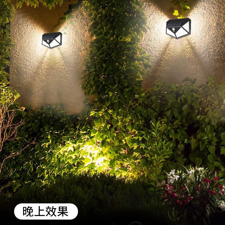 跨境太阳能壁灯 户外防水免布线壁灯四面发光人体感应庭院墙壁灯