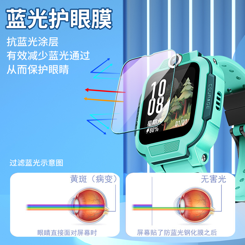 适用于小天才Q3钢化膜D5手表膜N5保护膜U5贴膜Q3全屏幕覆盖儿童电话手表护眼蓝光屏幕表盘贴膜