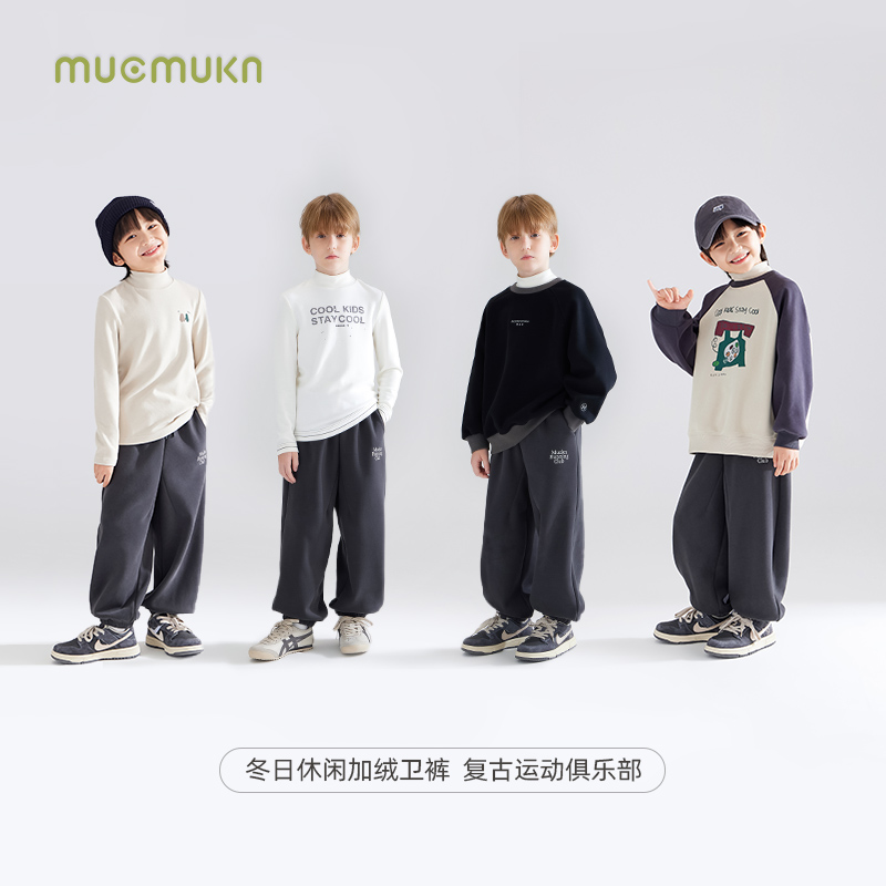 【慢跑俱乐部】软糯加绒运动卫裤子灰休闲男童冬新保暖摇粒绒束脚