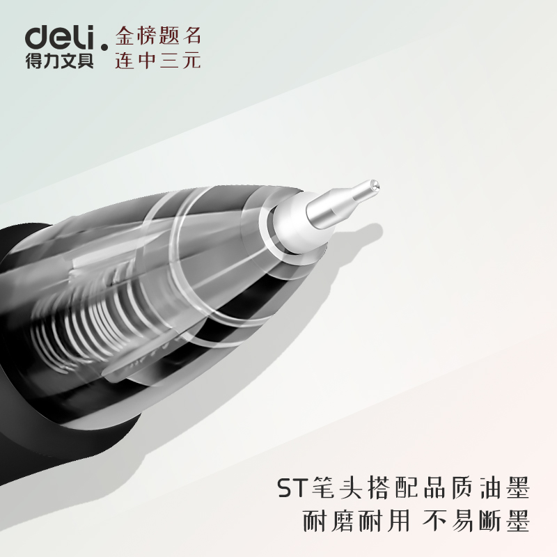 得力直液式走珠笔速干大容量直液笔0.5黑色中性笔学生用速干刷题笔水性笔直液笔圆珠笔商务办公简约风笔杆