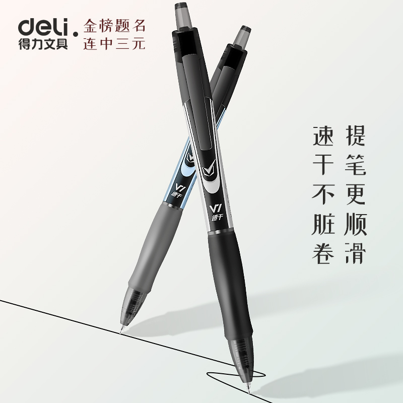 得力V1连中三元按动中性笔学生专用0.5黑色st速干考试碳素刷题笔