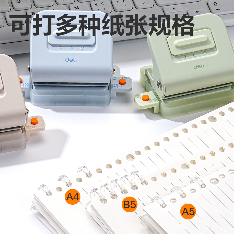 得力高颜值打孔器A4纸三孔6孔30孔活页本活页夹 装订打洞器