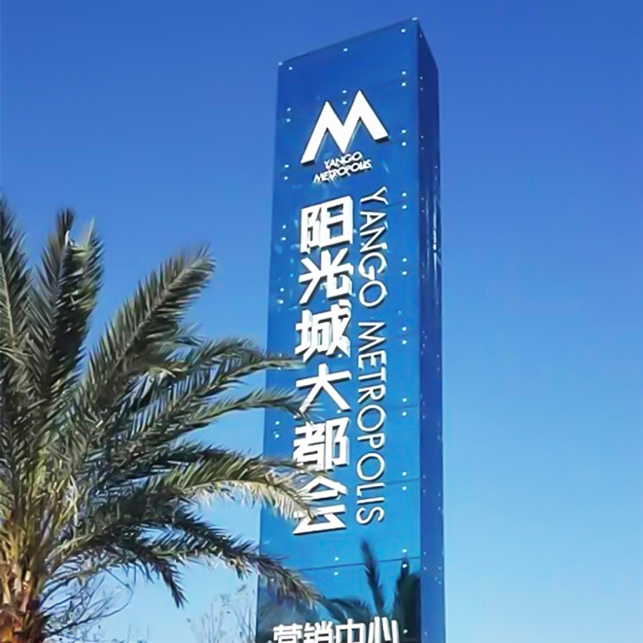 户外导向牌广告标识牌大型地产商场景区立式发光不锈钢精神堡垒
