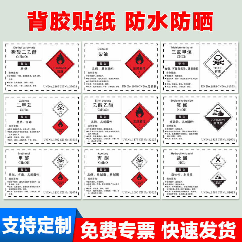 危险化学品标签贴纸危废包装桶标示贴硫酸乙炔石油醚柴油液碱MSDS周知卡定制有毒易燃有害腐蚀性可定制自黏贴