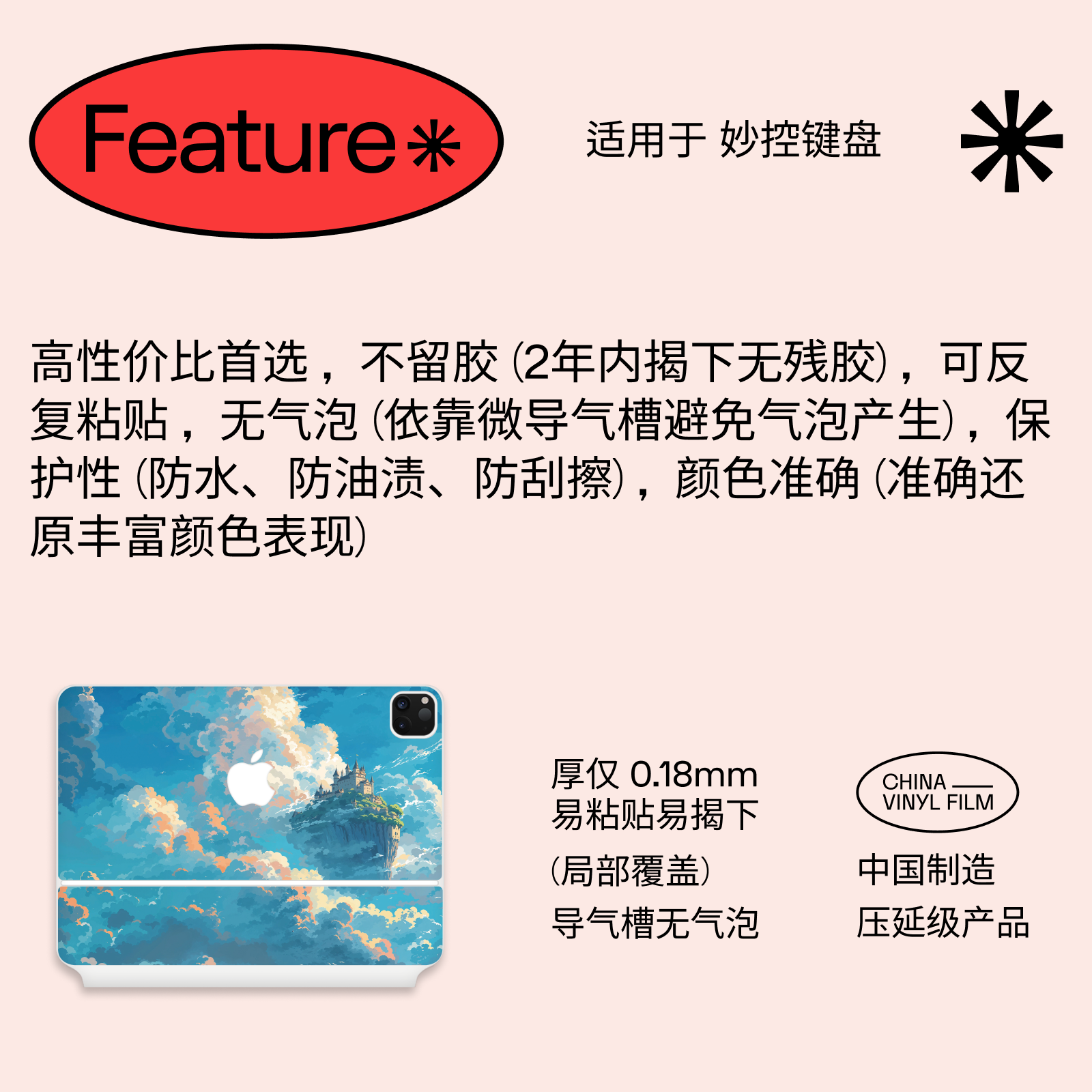 SkinAT 适用于iPad Pro妙控键盘宫崎骏画风天空之城保护贴膜 ipad平板妙控键盘彩色贴纸