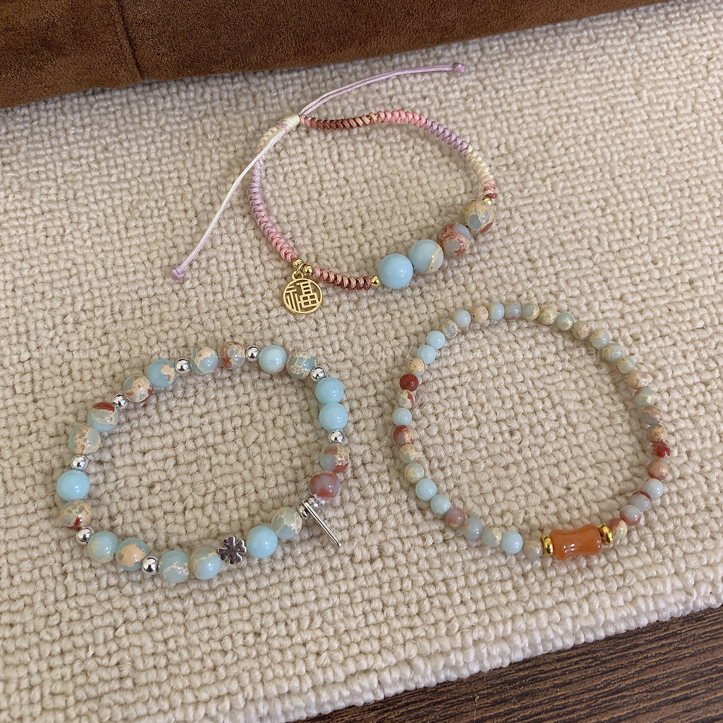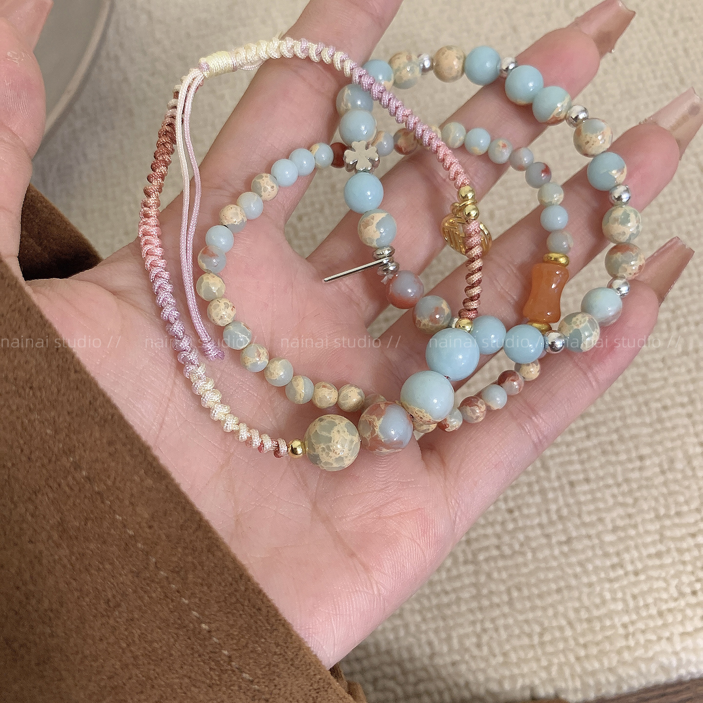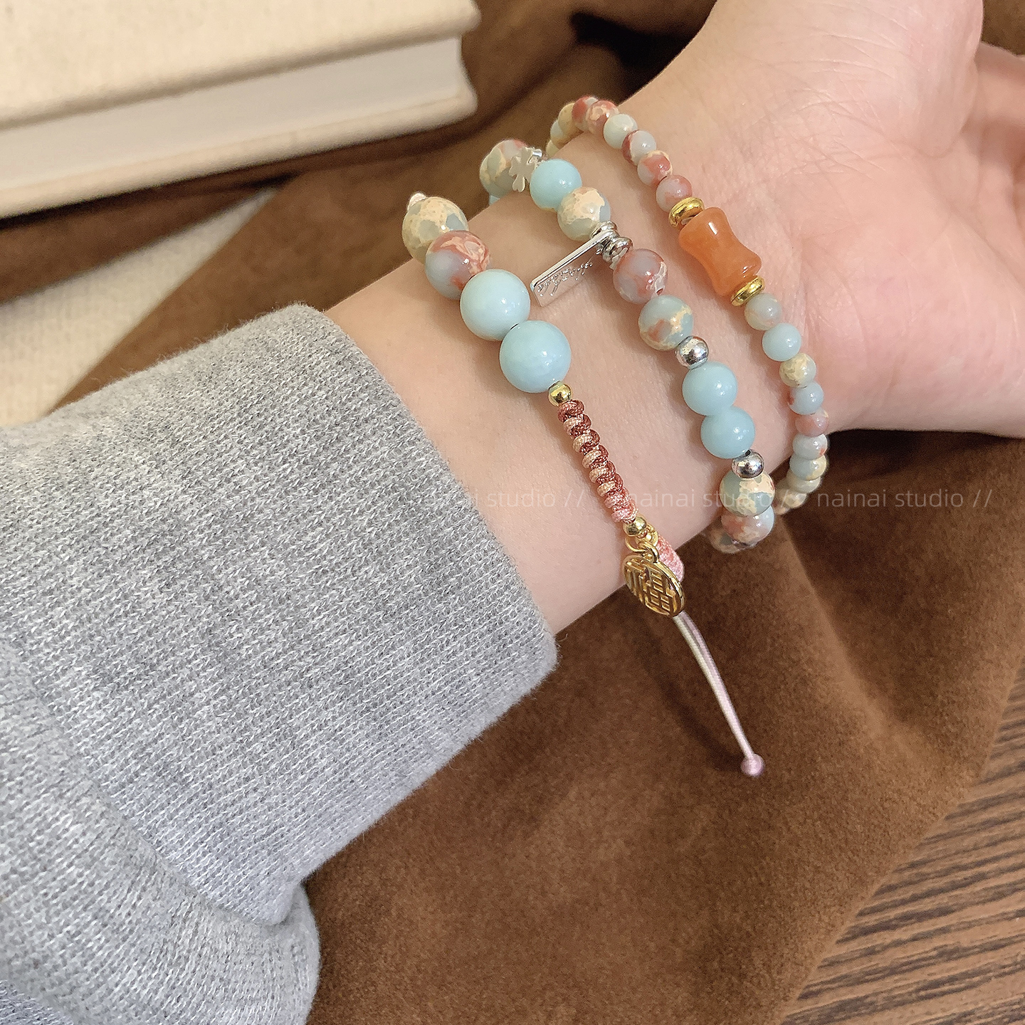 寿山石手链~彩色串珠天然石新中式民族风手饰手串闺蜜礼物配饰女A