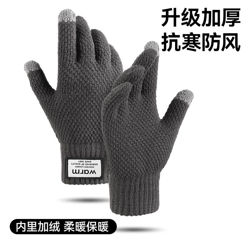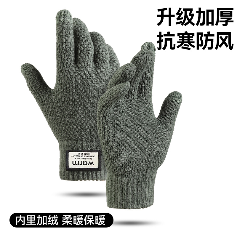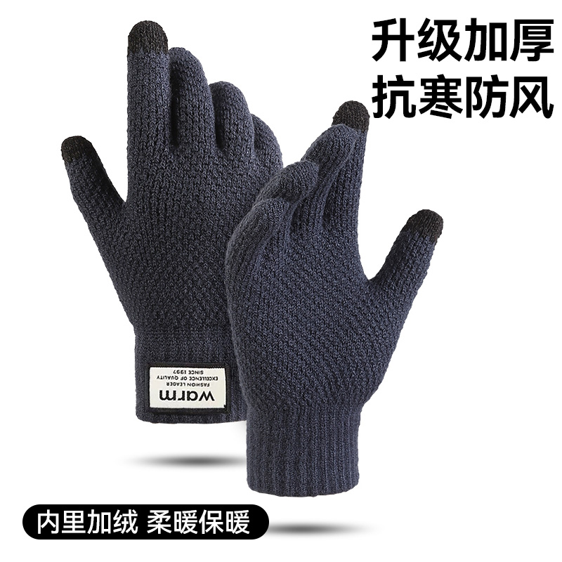 可触屏棉男士手套冬季保暖加绒加厚毛线针织骑行男女同款防寒手套