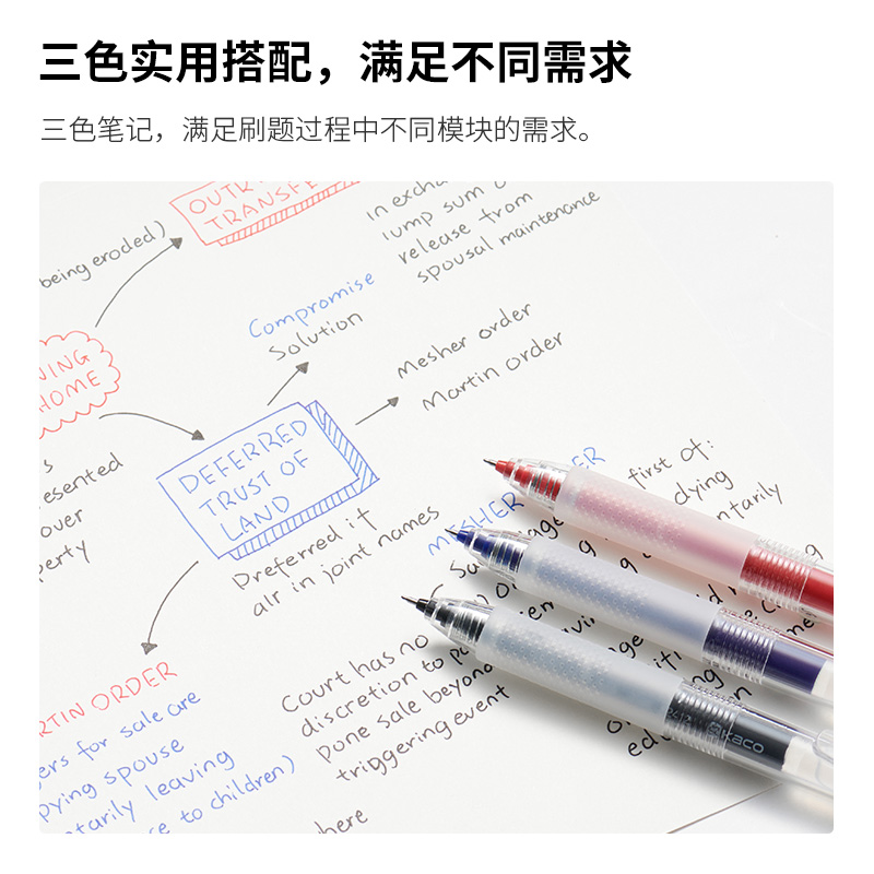 KACO珍宝大容量按动中性笔速干双珠ST笔尖学生用刷题考试黑蓝红笔