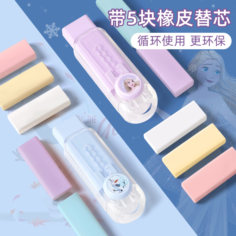 迪士尼推拉橡皮擦小学生专用一年级无屑干净擦字成线艾莎公主橡皮擦小学生女童冰雪奇缘正版授权橡皮擦草莓熊