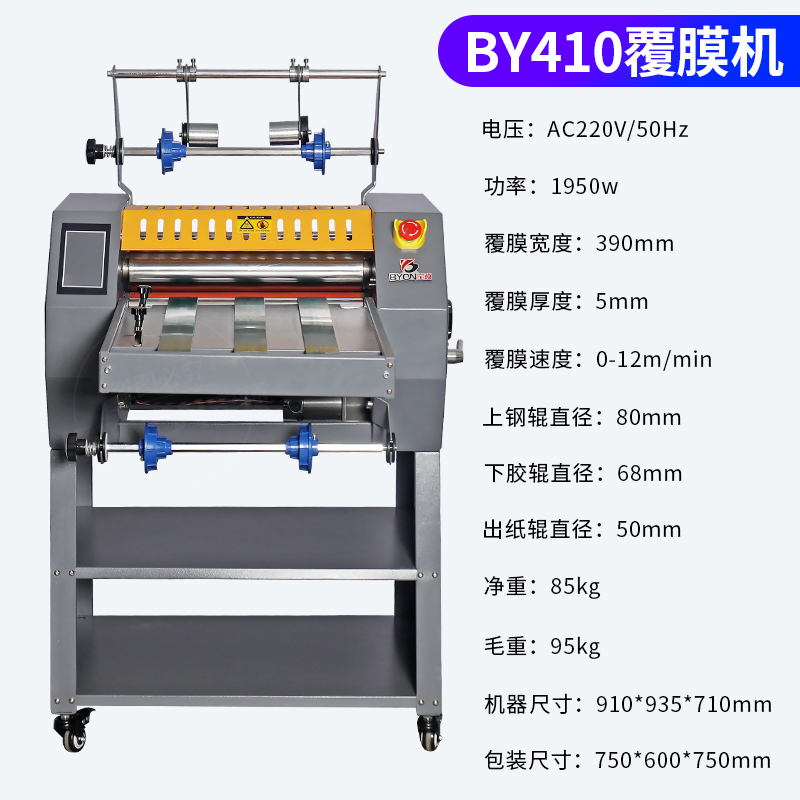 重型BY410立式覆膜机防卷曲皮带进纸全触屏不干胶热覆膜机大钢辊腹膜机热裱冷裱机照片相册过膜复膜机可调速