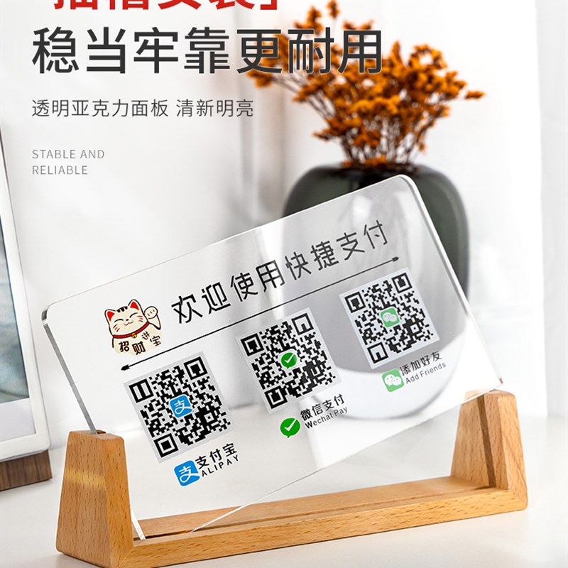 现货速发亚克力二维码展示牌支付宝店铺收付款收银摆台收款码收钱