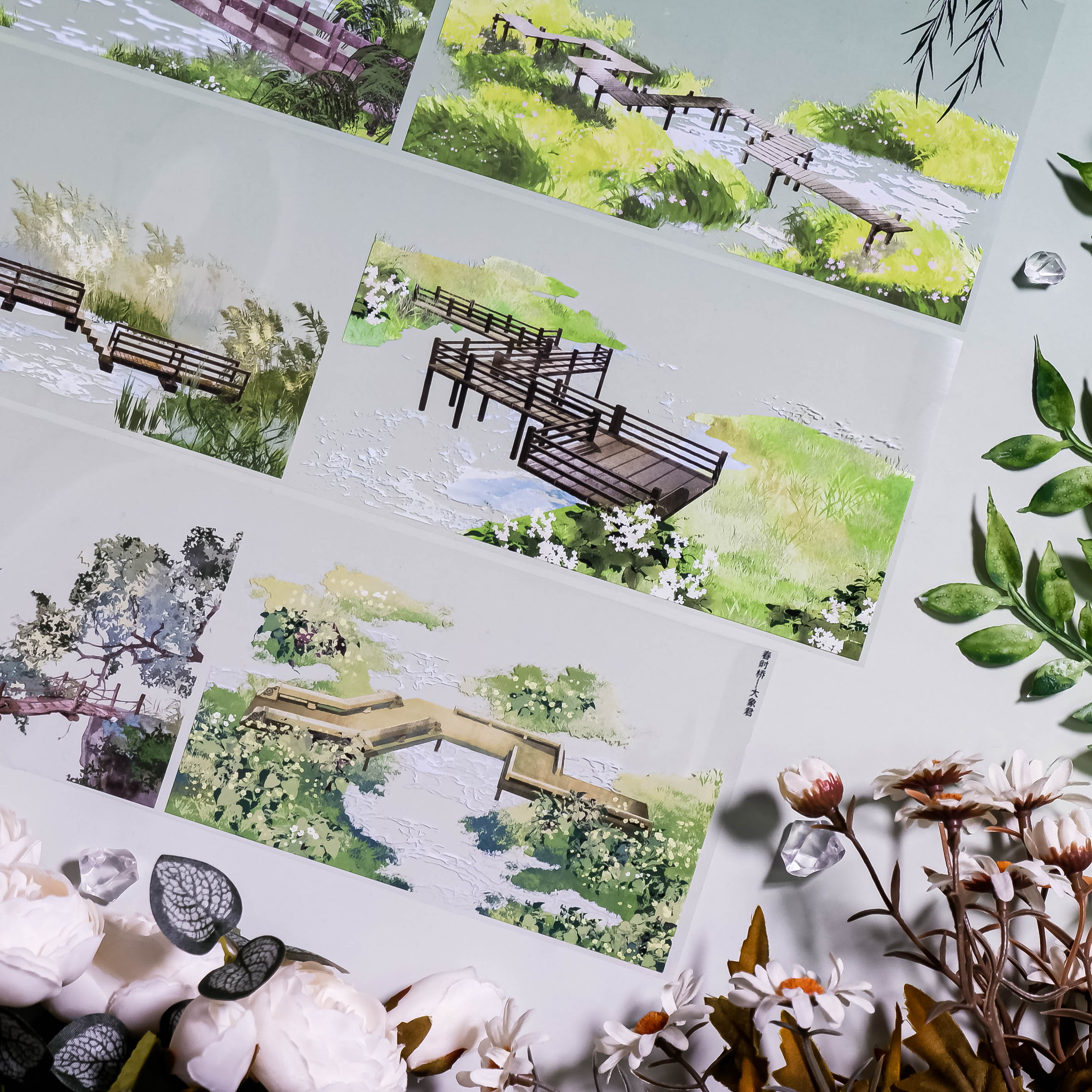 大象君 春时桥大背景 造景 古风 拼贴流麻手工胶带