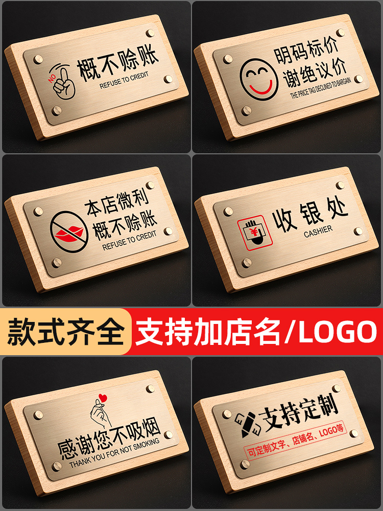 实木板温馨提示牌商店商场服装店超市概不赊账提示摆台本店微利免开尊口明码标价谢绝还价标识立牌子台座定制