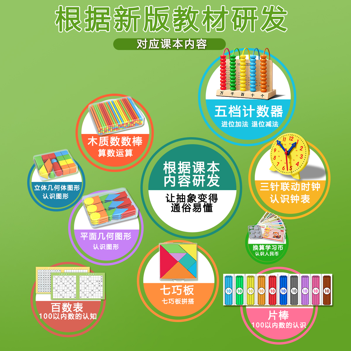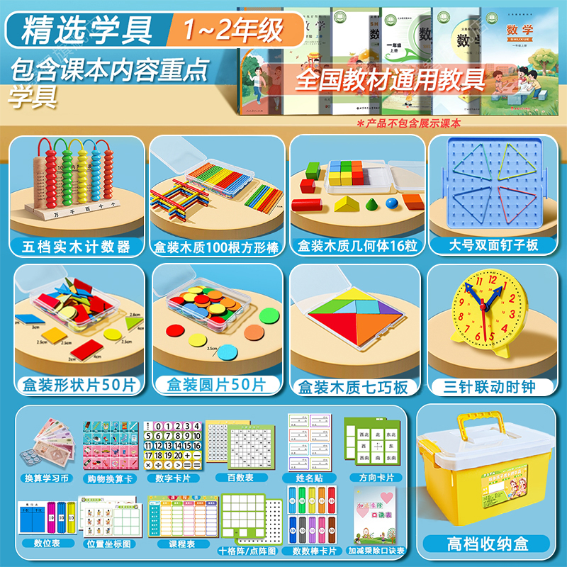 一年级数学教具上册全套学具盒小学几何体小棒学习用品套装计数器