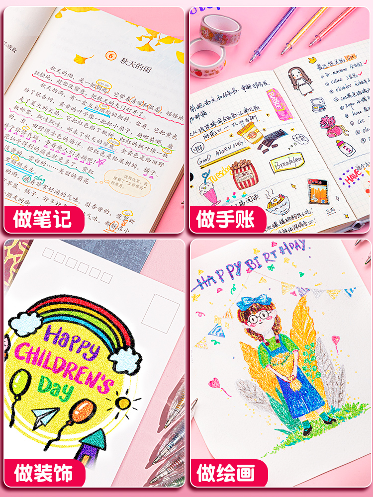 彩色闪光笔啫喱发光亮晶晶流沙银光变色做手账的手帐专用儿童莹光做笔记珠光标记闪亮金属轮廓闪粉水彩笔荧光
