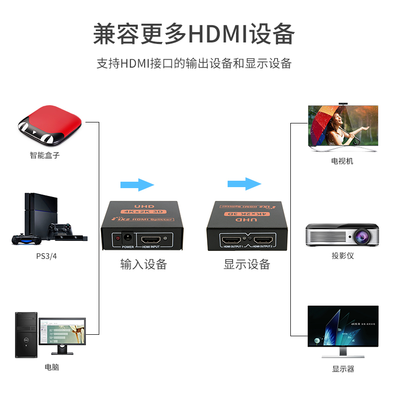 国产龙讯HDMI 1进2出HDMI分配器 4K定做板子一分二机顶盒播放器电脑显卡分配器一进二出共享器