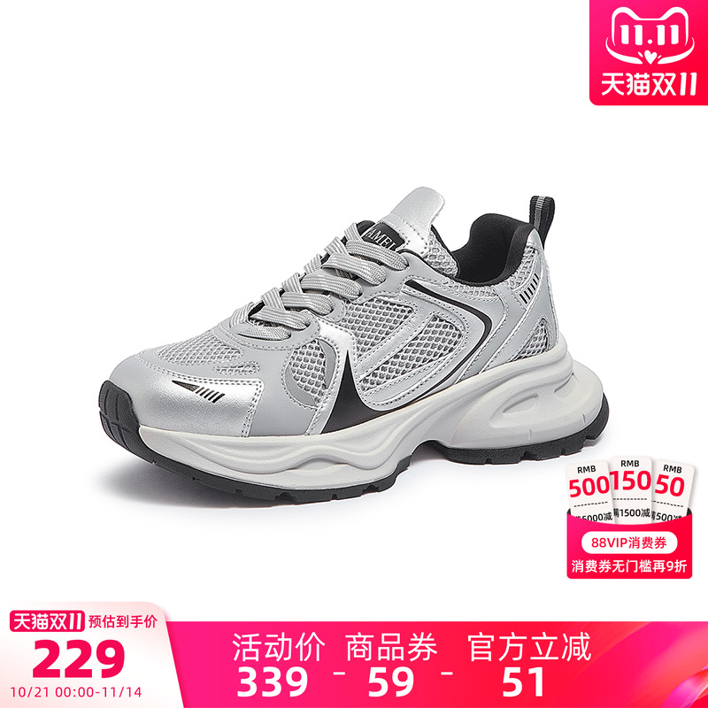 骆驼老爹鞋女鞋2025秋季新款运动鞋女款厚底增高复古银色休闲鞋子
