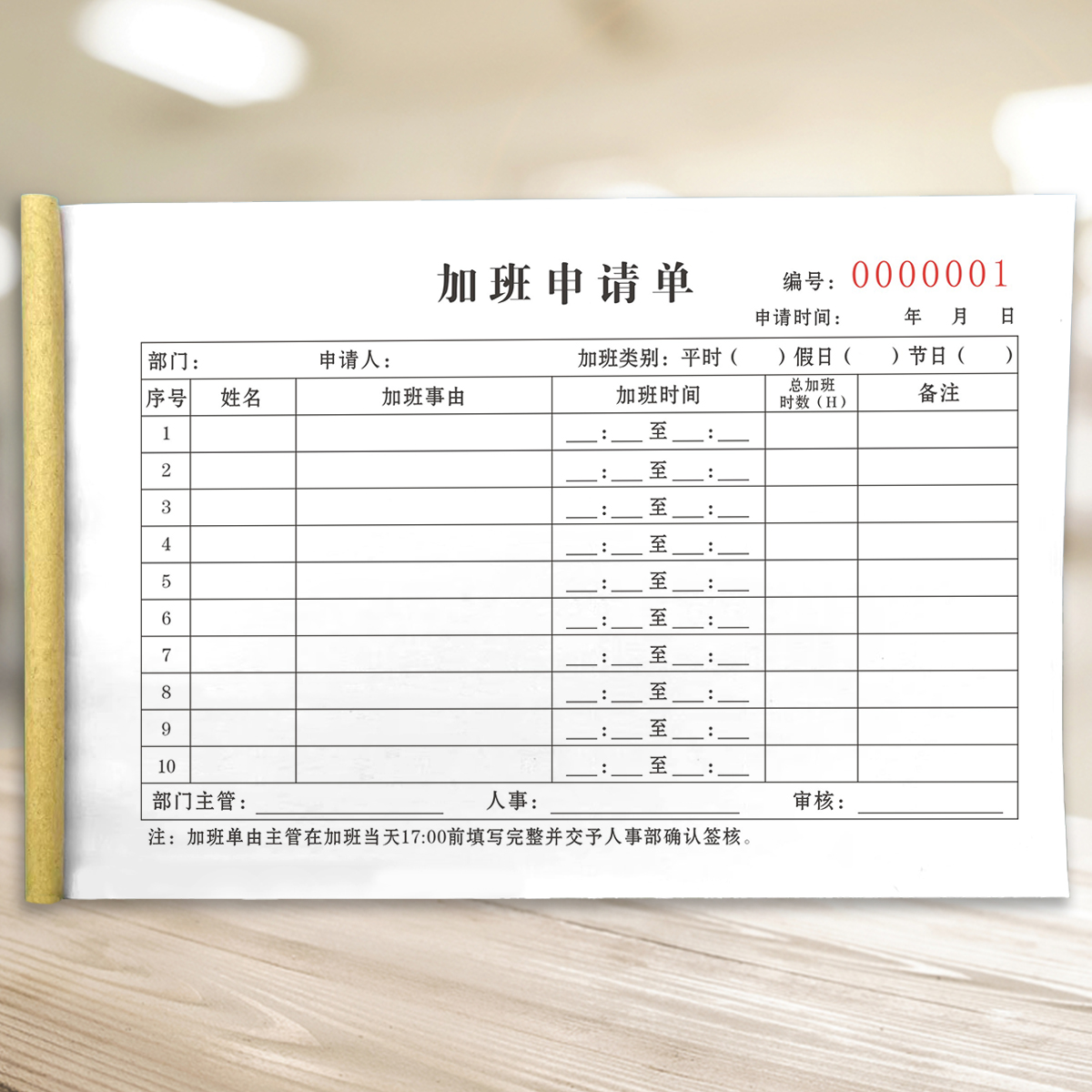 2本包邮人事行政通用员工申请单二联单联加班单工时统计表结算单三联班组人工费用支付结算单零时用工签工单