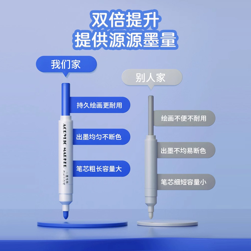 丙烯马克笔儿童小学生美术专用防水不透色24色48色笔芯无毒可水洗36色炳稀比心画笔套装幼儿园水彩笔绘画彩笔