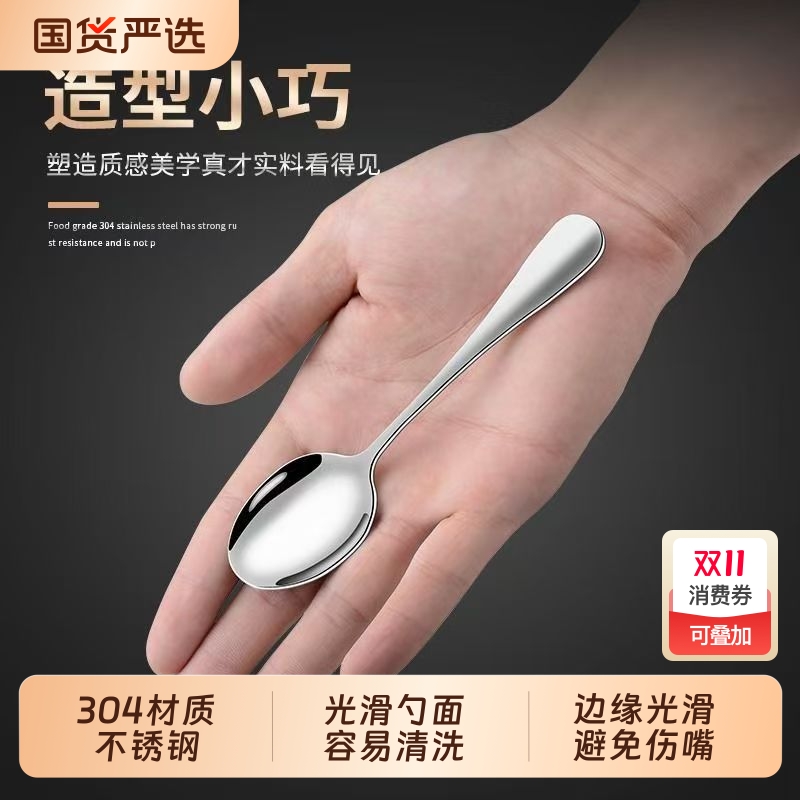 304不锈钢勺子商用酒店西餐具圆汤匙主餐勺甜品精致小咖啡勺茶更