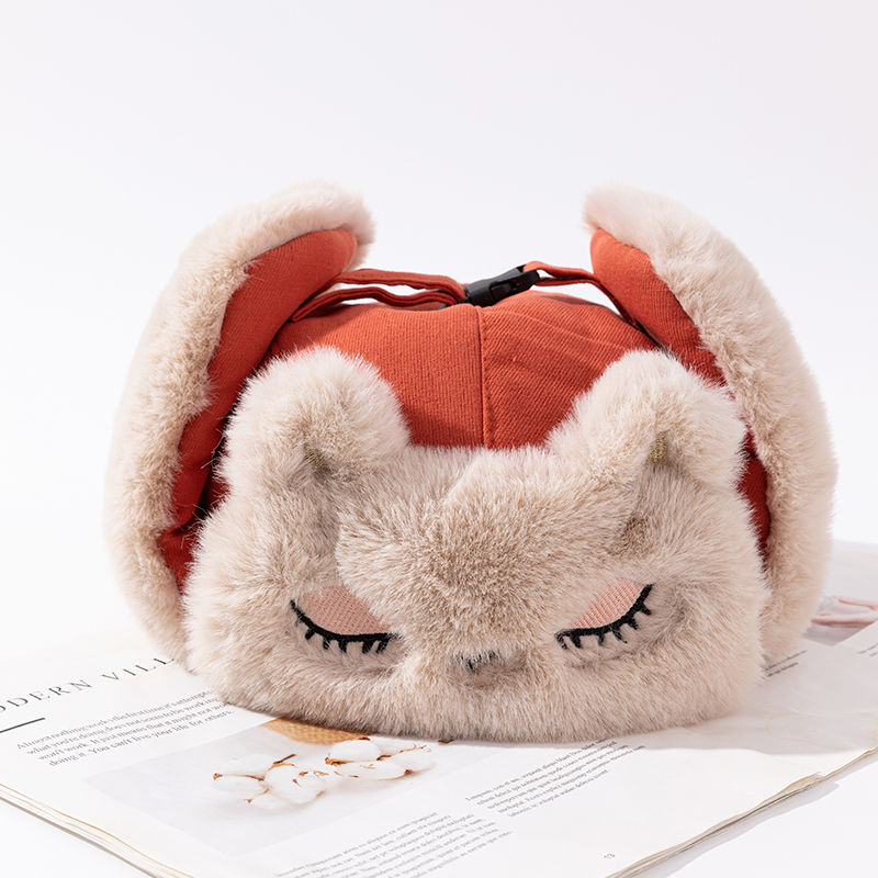 小狸雷锋帽女冬季可爱加绒儿童帽护耳加厚防寒保暖偏大头东北棉帽
