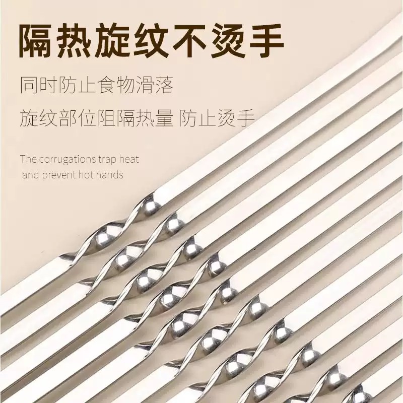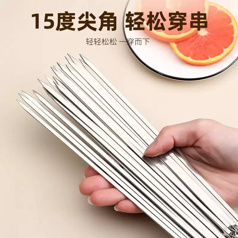 不锈钢烧烤签家用扁签户外羊肉串烤肉签子钢签铁签全套工具烧烤针