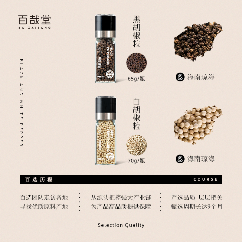 正宗海南纯黑白胡椒粒现磨欧芹大蒜海盐带研磨器商家用官方旗舰店