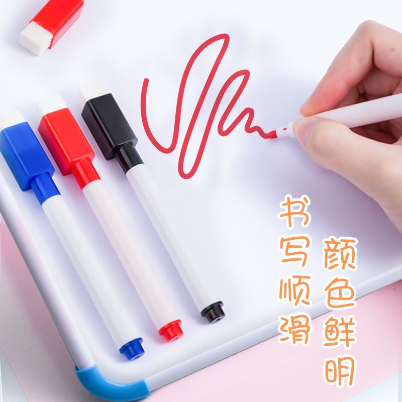 彩色白板笔可擦儿童无毒安全画板笔白班笔细头水性记号笔幼儿园可擦笔控笔训练磁性小白板涂鸦笔写字笔红黑色