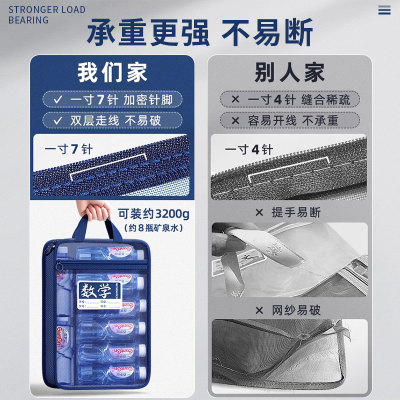 L型科目分类袋透明分科文件袋拉链式男孩初中生专用学科分科小学生学习作业手提拎书袋课本分类大容量收纳袋