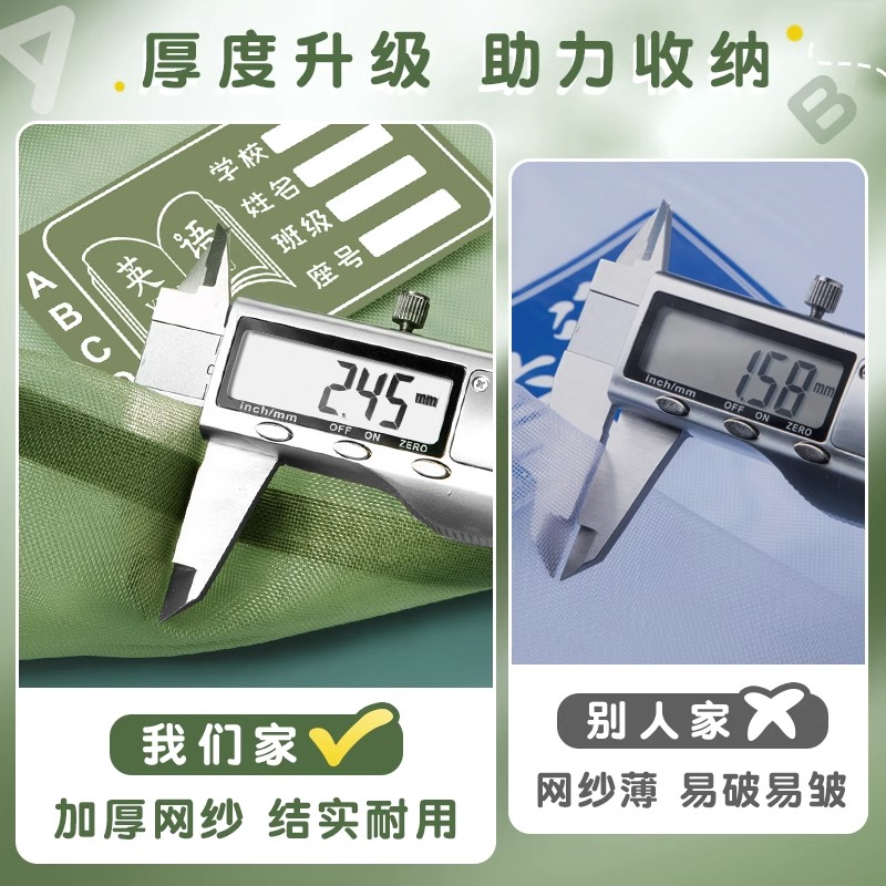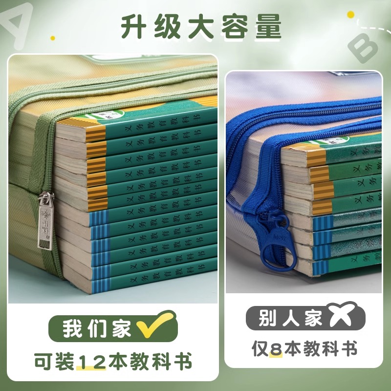 双层a4网纱科目分类袋文件袋收纳袋小学生拉链式手提补习书袋透明拎书学生学科试卷袋作业书本学习装书初中生