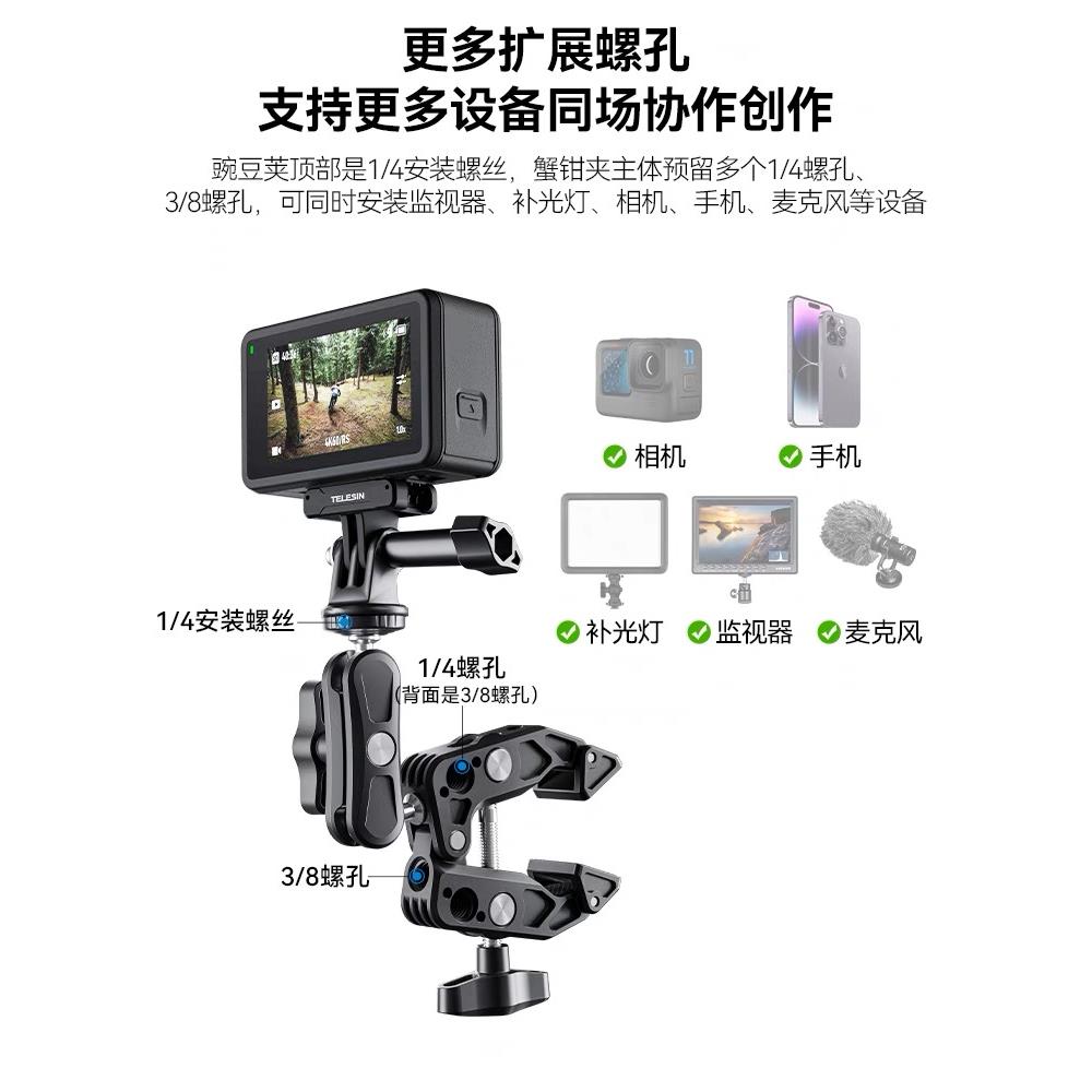多功能蟹钳夹运动相机手机摄影大力豌豆夹金属户外拓展万向云台架