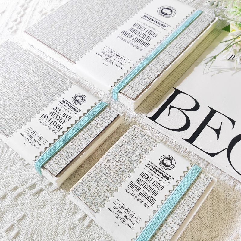 遵爵毛边水彩手账本全棉浆300g中粗细纹写生随身便携水彩画纸美术生专用彩铅水彩方形口袋本初学者旅行绘画本