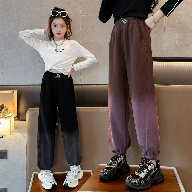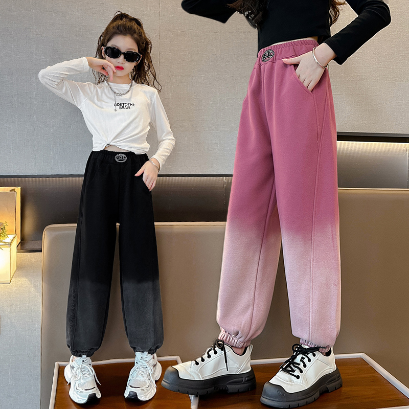 女童裤子2025新款儿童外穿长裤大童束脚运动裤加绒黑色松紧腰洋气