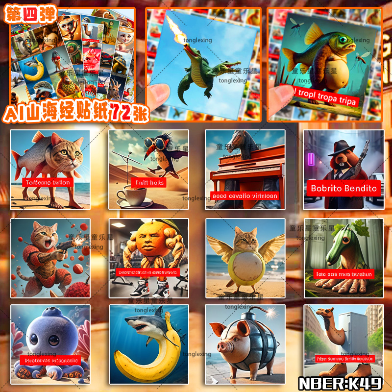 ai山海经变异贴纸抽象创意贴纸合集diy卡通儿童玩具贴画防水贴男