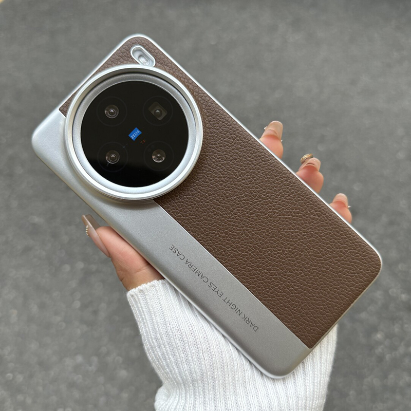 白月光呀~秒变相机高端奢华荔枝皮纹适用vivoX200s手机壳x200promini新款OPPOFindx8s+金属银x8Ultra全包防摔