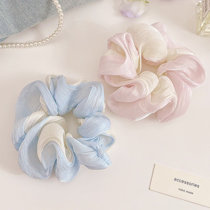蓝色海屿流光渐变网纱大肠发圈少女高颜值扎发头绳橡皮筋发圈发饰