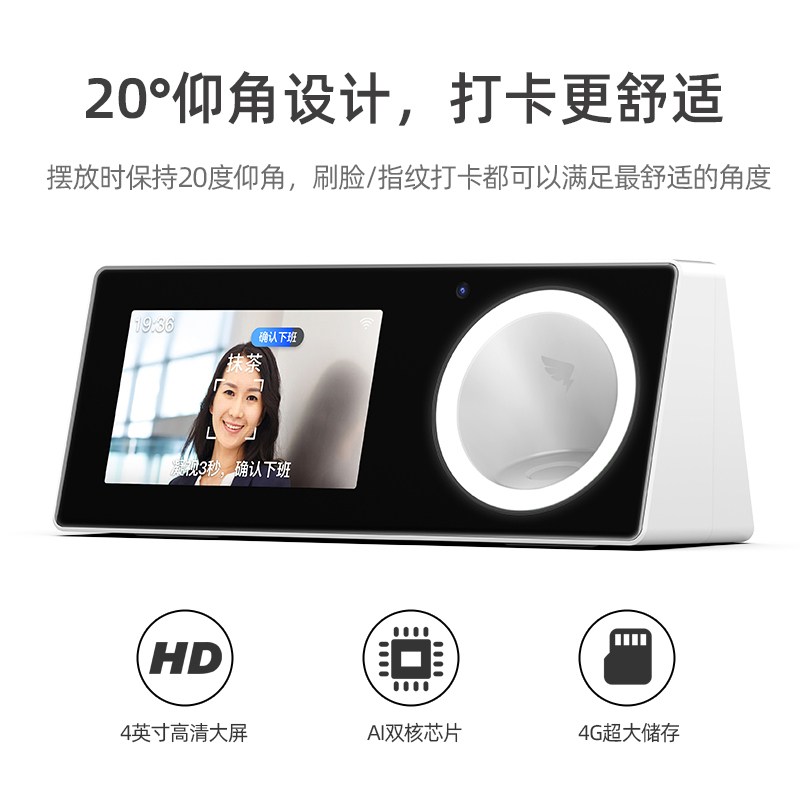 钉钉智能人脸识别考勤机M1F 无线智能打卡机多地多店上班签到人脸机面部识别刷脸 无接触考勤打卡机