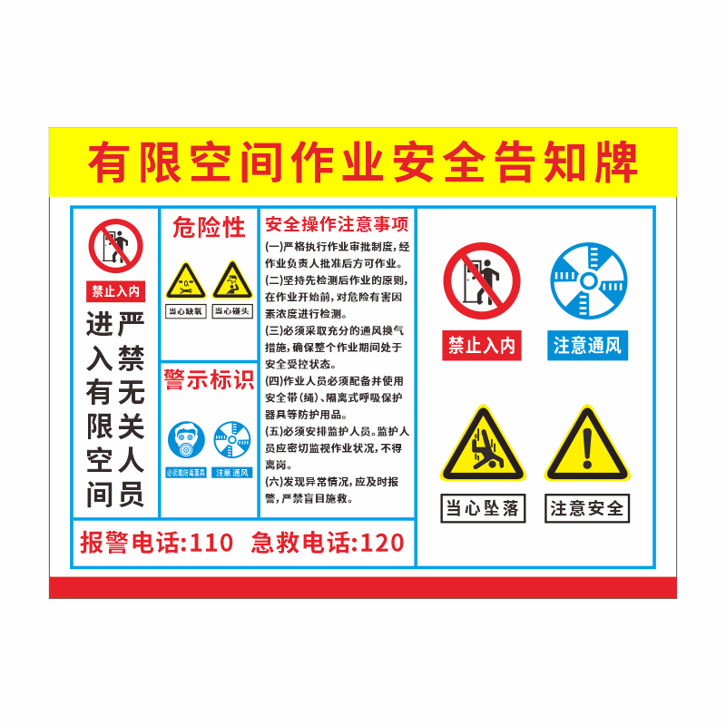 有限空间安全告知牌警告标识工厂车间仓库配电房密闭受限空间作业警示提示标志贴纸职业危害风险告示标示定制
