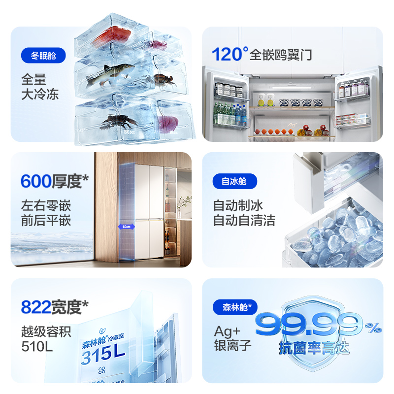 政府换新补贴海尔510L法式四门一级风冷超薄嵌入冰箱