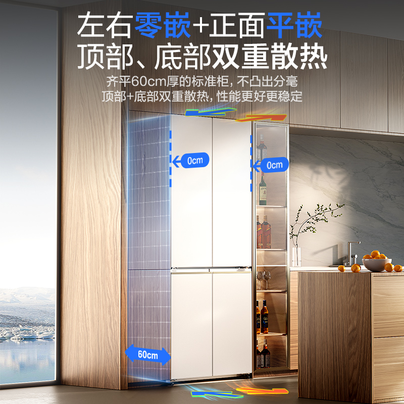 美的M60小机皇520超薄零嵌入式冰箱家用双系统法式多门四门双开