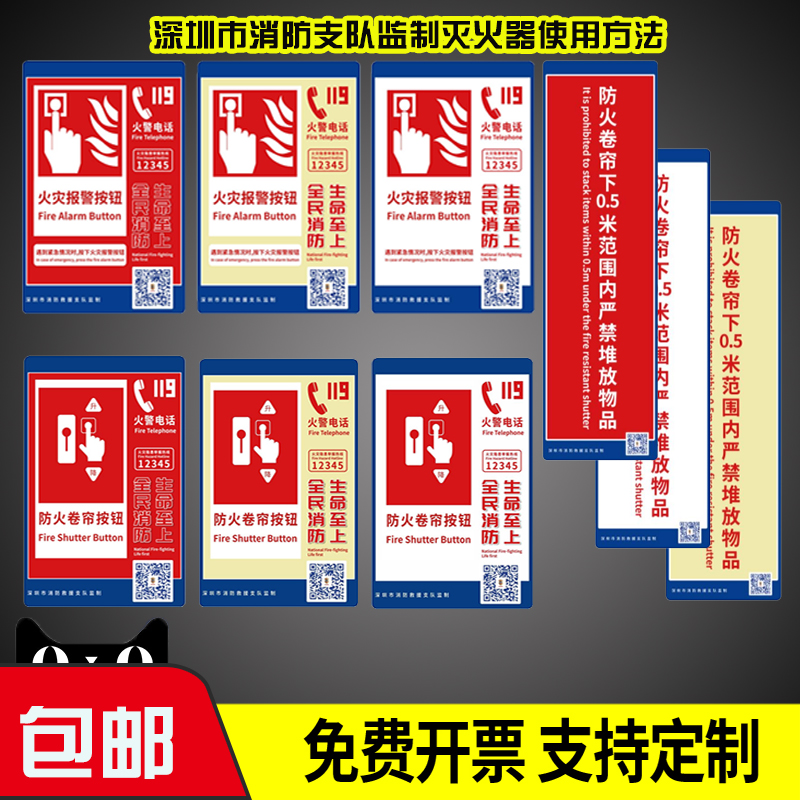 亚克力深圳市消防支队监制物业消防栓箱消火栓灭火器使用操作方法三提示四个能力手报卷帘贴标识牌贴纸PVC贴