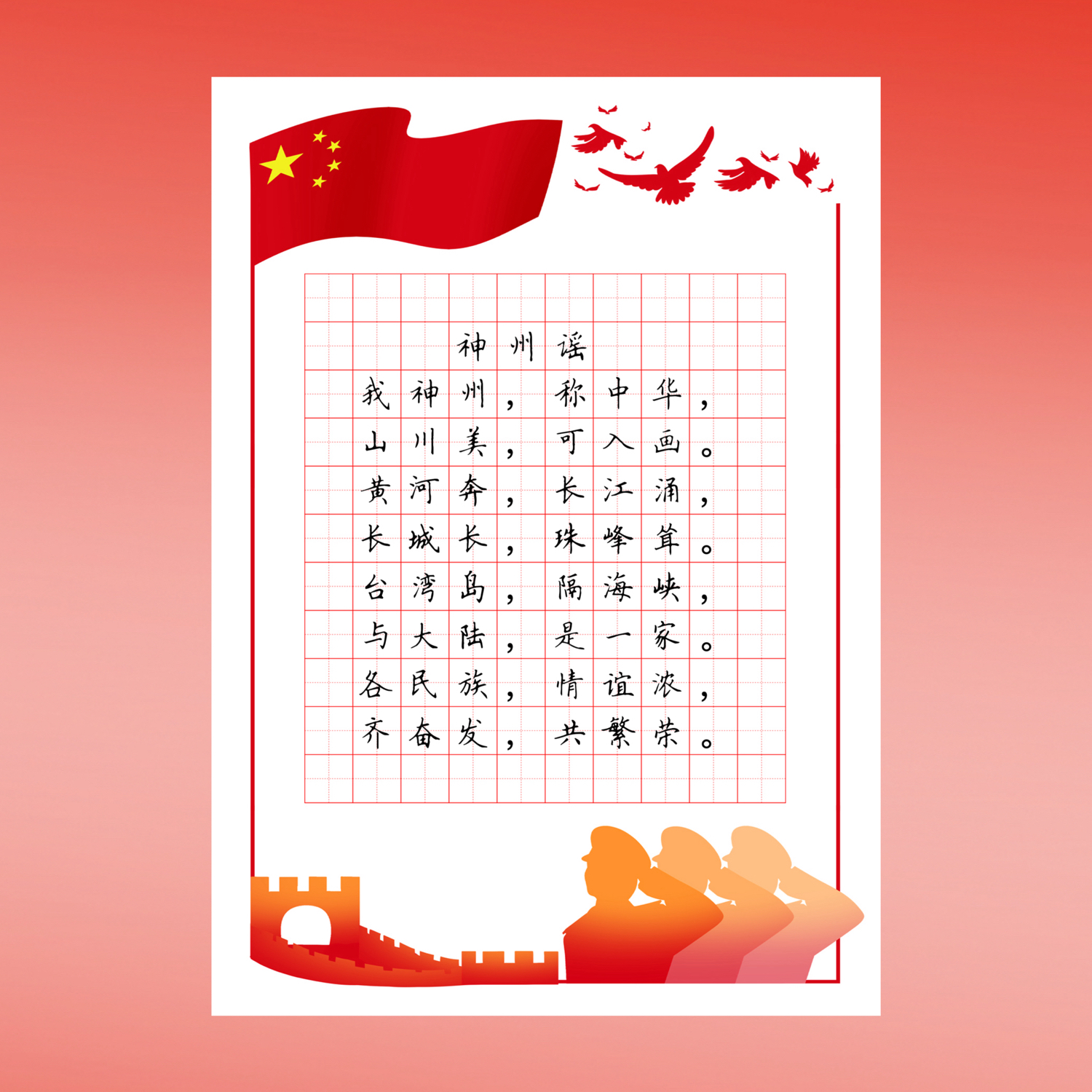 a4红色神州谣作品纸方格田字格学生比赛专用纸祖国在我心中110格