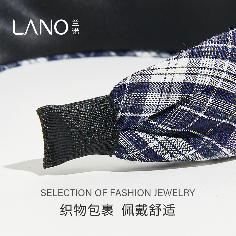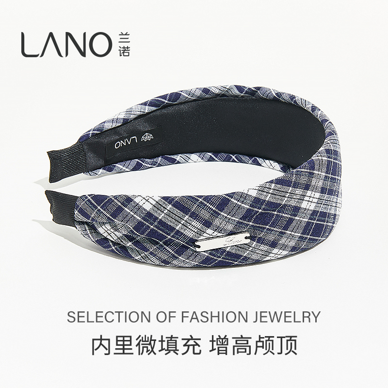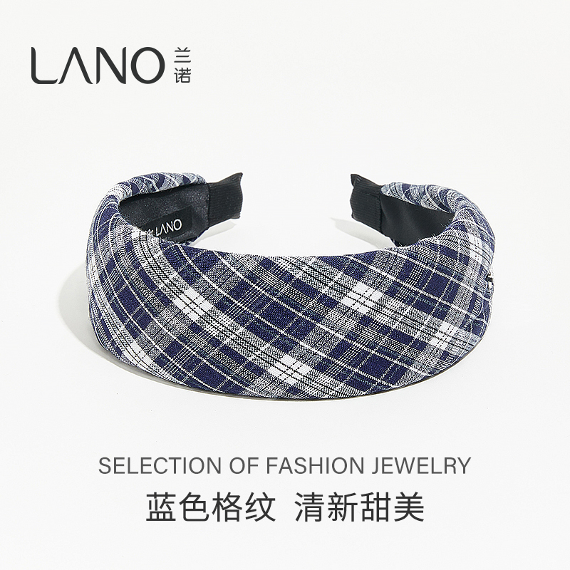 兰诺女款格纹宽边发箍蓝色2025新款高级感日常外戴高颅顶头箍头饰