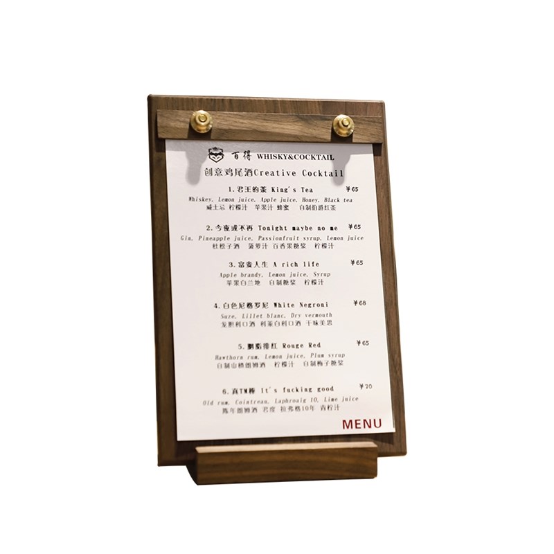 菜单夹胡桃木展示牌桌面咖啡店菜单板立式a4垫板餐厅木质账单夹