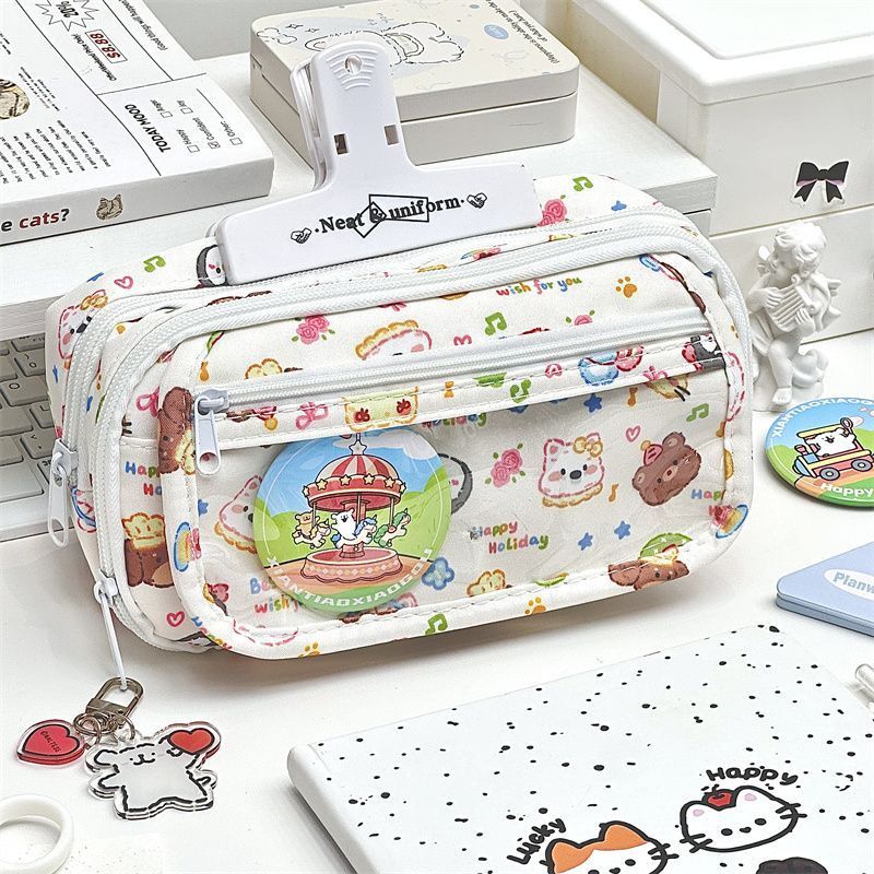 新款高颜值卡通小狗笔袋学生文具吧唧收纳袋多层PVC大容量痛包袋