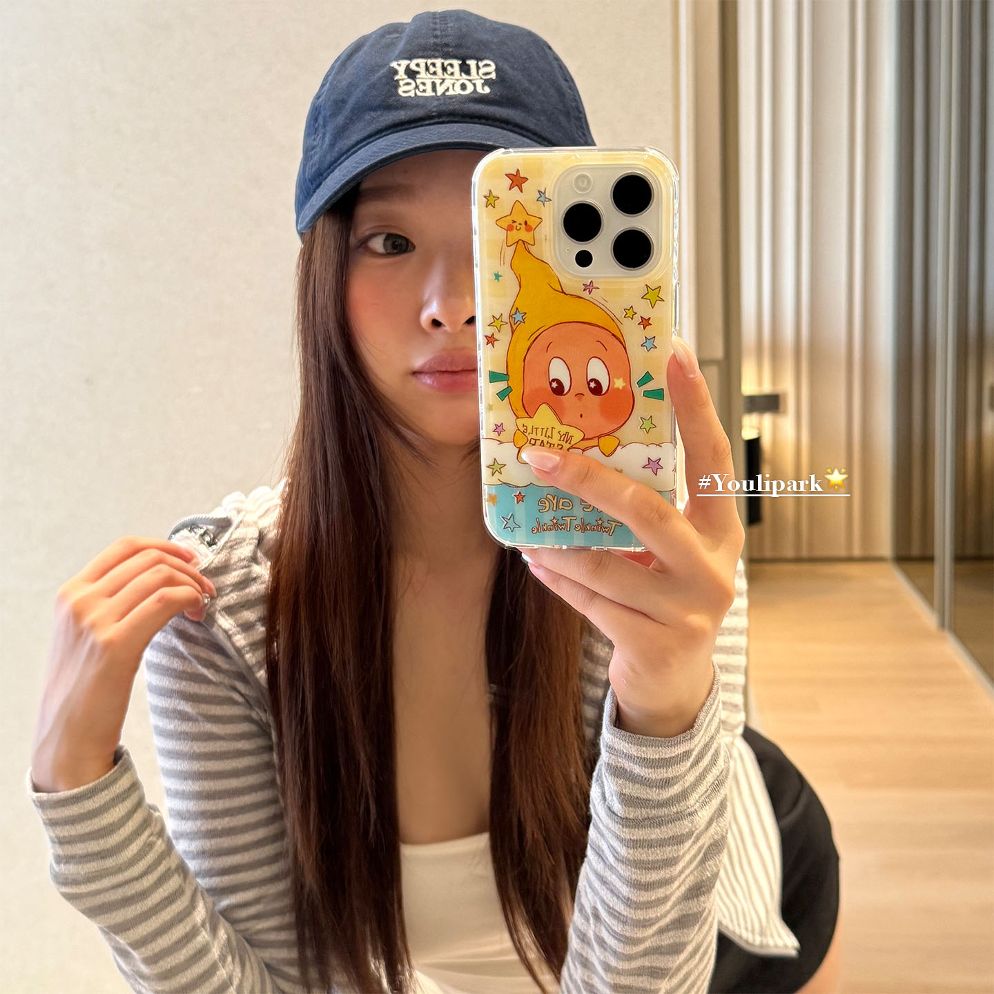由里公园ins可爱治愈系尖尖帽星星人插画15适用17pro苹果17ProMax手机壳iPhone16全包17新款14Promax保护套女